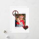 This modern holiday photo card features one vertical photo on a classic white background with modern peace sign and heart in classic red tartan. On the reverse side is the same white background, to which you can add another photo or additional text by selecting the "edit using design tool" option. **ALL colours including symbols, background, and text are customisable using the design tool.