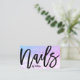 This is the perfect business card for a trendy, stylish, girly, and modern Nail Technician. This design features simple black brushstroke typography on a faux printed mermaid purple and blue glitter and purple with white marble stone ombre gradient glamourous and chic background. Whether you are an independent nail tech or you work for a salon these cards will add that personal and professional touch to your business and career advertisement.