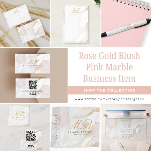 Modern Chic Rose Gold Blush Pink Marble Monogram Thank You Card