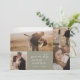 This modern chic sage green photo collage save the date card is perfect for a simple wedding. The minimal boho design features rustic unique and stylish bohemian typography in an olive green woodland earth tone colour.