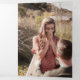 This design makes a chic and modern statement. It features a large horizontal photo and a beautiful script, which spans the entire outside of this tri-fold card. The greeting on the front simply says "Save the Date." When you fully open the card, you'll see one photo on the left, one photo on the right, and in the middle, your personal text. The multi-photo layout allows you to upload a total of three of your favourite photos.