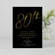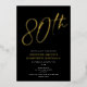 This modern 80th birthday party invite features a chic black background with raised gold foil script and flat white modern typography. The script says "80th". All of the colours are fully and easily customisable. You can even add a photo to the back! Just use "design tool" in the personalisation drop-down menu. Raised foil is available in gold, silver, and rose gold. Choose real foil printing to add the wow factor to your next party invitations!