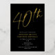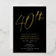 This modern 40th birthday party invite features a chic black background with raised gold foil script and flat white modern typography. The script says "40th". All of the colours are fully and easily customisable. You can even add a photo to the back! Just use "design tool" in the personalisation drop-down menu. Raised foil is available in gold, silver, and rose gold. Choose real foil printing to add the wow factor to your next party invitations!
