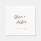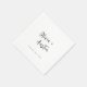 Modern minimalist wedding paper napkins feature bold handwritten brushy script bride and groom's name in charcoal black and white colour, simple and elegant.