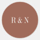 These modern chic terracotta rust monogram stickers are perfect for a simple wedding. The desert boho design features rustic unique and stylish bohemian typography in an earthy burnt orange rust colour.