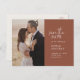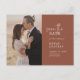 This modern chic terracotta rust QR code save the date postcard is perfect for a simple wedding. The desert boho design features rustic unique and stylish bohemian typography in an earthy burnt orange rust colour. Personalise the front of the postcard with a photo, your names, date and wedding location. Include a QR code link to your wedding website for more info on the back of the postcard.