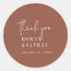 These modern chic terracotta rust thank you stickers are perfect for a simple wedding reception. The desert boho design features rustic unique and stylish bohemian typography in an earthy burnt orange rust colour.