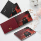 On the back cover, include an elegant design featuring entwined gold wedding rings on a reddish backdrop, alongside your names.