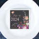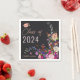 Class of 2024! Elegant modern spring summer flowers illustration with pretty wild flower and brush script graduation napkins with a modern calligraphy typography with red, purple, pink , terracotta flowers on dark grey background