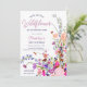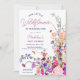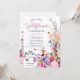Our little wildflower is turning 1! Elegant modern spring summer flowers illustration with pretty wild flower and brush script first birthday party invitation with a modern calligraphy typography with red, purple, pink , terracotta flowers.