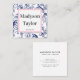 This modern chinoiserie business card is perfect for a small business owner, consultant, stylist and more! The blue and white jungle chinoiserie design features wild animals of monkeys and leopards amongst botanical flowers and leaves accented with whimsical patterns. You can change colours and fonts in the 'Edit Design' section. Make an impression with this standout design. ©Marisu Valencia