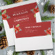 Send your holiday wishes in style with this Peace & Joy red poinsettia envelope - a perfect finishing touch for your Christmas cards. The exterior features a bright red background adorned with elegant poinsettias and space for your return address, while the interior includes a beautifully printed Christian Christmas greeting. This thoughtful design makes opening your mail feel like unwrapping a blessing - a modern, faith-filled detail that completes your holiday correspondence with love.