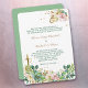 Here's a beautiful traditional Christian wedding invitation that combines soft cream and pink roses and leaves with a pair of interlocked gold wedding rings and a gold cross. Adding interest to the design is a smattering of gold splash confetti. Your custom text is in matching green and gold at the centre, and everything is placed on a white background. The back of the invitation is matching soft medium green, with another image of the rings, and another custom text field at the bottom. Currently it says "...the greatest is love", but you may easily change it to anything you'd like. Popular text is "love never fails" or "from this day forward", or "two shall become one", or even the bride and groom first names. It's up to you! A touch of traditional with a bit of modern!