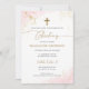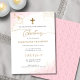 Modern Christian Pink Gold Cross Girl Christening Invitation