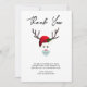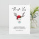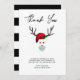 Send your customers a special thanks for the holidays with this Modern Christmas Business Reindeer Non Photo Holiday Card. It is modern minimalist designed with a cute reindeer wearing a red Santa hat and a dusty blue face mask. A touch of red holly berry leaves are on the hat. The text is "thank you" in customisable black big trendy hand lettered script across the top front. A simple greeting is on lower half of card and you can change the wording if needed. The signature text is "happy holidays" and your business name. You can change any section of the words or colours by simply using the template made available. The back of card is black and white horizontal stripes.