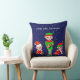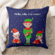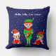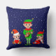 Modern Christmas Elf Squad on Blue Throw Pillow