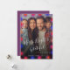 Simple custom family photo "Merry Bright & Grateful together" (changeable) script Christmas holiday card template with neon glow colourful lighting bulbs frame. +++++++++++++++++++++ Easy to personalise with your picture, text, family name, and your wishes on both sides!