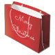 Merry Christmas, large holiday paper gift bag in peach, pink and rusty rose, personalise text to make it your own style for any occasion.