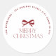 Trendy minimalist red bow simple, elegant typography Merry Christmas holiday custom round return address sticker label.