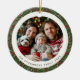 Modern Christmas Holly Foliage 2 Sided Photo Ceramic Tree Decoration