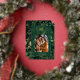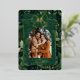 Your family's holiday photo will look special in an arch photo template inside a golden foil frame topped with a bow. Below the photo, there's a template to customize the card with your family name and the year in casual handwriting-style typography. A festive leafy green background adds holiday cheer with the beauty of nature. On the back, there's a template for a special holiday message from your family.