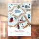 Modern Christmas map story telling illustrations featuring pine trees, penguins, ice skating shoes, iced lake, houses, villages, road, mountain, cable cabin, skis, snowman and more! Add your positive sentiments, with peace and love, rejoice, joyful, hope, merriest, cherish, hugs....