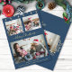 Modern Christmas Navy Blue Gold Collage Photo Holiday Card