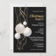 Invite your guests with this modern black and white Christmas party invitation featuring elegant gold and white ribbons and baubles. This invitation is suitable for corporate and family Christmas celebrations.