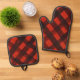 Modern Christmas Painted Red Black Plaid Tartan Oven Mitt & Pot Holder Set