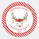 Modern Christmas Party Personalised Reindeer Candy Cane striped Party Envelope or Favour Goodie Bag Seal Sticker with Red and White Stripes and a cute Reindeer with Floral Antlers and Ornaments. The family name and date can be update on these customised Christmas Party Paper Sticker. Please contact the designer for additional matching items.