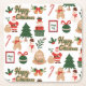 Modern fun festive pattern including Santa, Christmas trees, candy canes, gingerbread men, baubles, gifts and snowmen with "Happy Christmas" greetings thrown in.