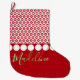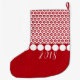 Decorate your mantle with this modern personalised Christmas Stocking. The top of the stocking features a retro snowflake pattern strung with circle ornaments. Just below that is a space for your name in a green and white script. The back has the same snowflake and ornaments pattern, and has a space for the year in white. Click customise to change the fonts, resize or re-position the text or graphics - edit it however you like. Merry Christmas!