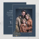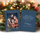 Simple, stylish custom photo "merry christmas" christmas card with modern minimalist modern gold text on a elegant chic blue background. The photo and text can easily be personalised for a design as unique as your special family! add seasons greetings or happy holidays ,The image shown is for illustration purposes only to be replaced with your own photo. #christmas #holidaycard #modern #family #gold #blue