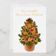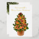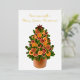 Have yourself a Merry Lemon Christmas! Beautiful Modern Gold Christmas Holiday greeting card featuring a Christmas tree decorated with dried lemon oranges fruits and pine cones into their branches. A star anise, also called Chinese Star Anise or Star Aniseed decorative ornament is placed on the top crown of the Christmas tree as a tree-topper or treetopper.
