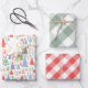 Modern Christmas Tree Farm wrapping paper sheets consists of 3 coordinating designs: hand-drawn trees in a modern holiday palette with two coordinating buffalo plaid sheets.