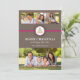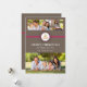 A modern look to a photo Christmas photo greeting card has a dark brown background, light green text, and a swirly christmas tree. There are three photo frames at the top and one large photo frame across the bottom. All text is customisable.