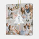 Celebrate the magical and festive holiday season with our custom holiday photo ornaments. Our modern elegant holiday design features a modern and minimalistic four photo holiday collage grid layout with a modern white Christmas tree design place in the centre of the four photo holiday photo layout. Customised with your family initial, year and name. The reverse side of the holiday photo ornament features one single large photo. You can customise the text size, text colour, font and layout for your own personal design preference