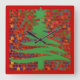 Modern Christmas Tree Stencil Print Green Square Wall Clock