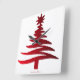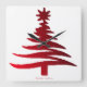 Modern Christmas Tree Stencil Print Red Square Wall Clock