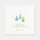 Accent your Christmas party with this simple but colourful holiday paper napkin. It features a retro graphic of three trees appearing in shades of teal and lime green and is accented with blue snowflakes. This is perfect for any family or friends holiday party.