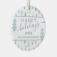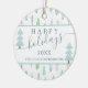 Create a keepsake holiday photo ornament featuring modern abstract Christmas trees and forest trees and winter snow patterns in shades of blue, green and white with the greeting HAPPY HOLIDAYS in handwritten script and personalised with your name and year on the front a full-bleed photo on the back. Contact the designer via Zazzle Chat or makeitaboutyoustore@gmail.com if you'd like this design modified, on another product or would like coordinating items.