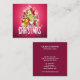Business cards with a cool Christmas illustration. The text says Merry Christmas & Happy New Year. Designed with a tree shaped mound of presents with festive snowflakes, stars, christmas baubles and glowy looking sparkles. The background is a vibrant reddish pink colour.