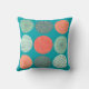 Brighten up any room with this modern vibrant simple pattern. Shades of mint green and orange circles lie on a teal background and the front has a monogram which can easily be personalised or removed.