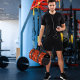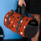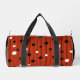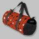 Stylish gym & duffle bag design features an abstract circle pattern in black and white on a modern red background. Finished in matching black trim, there is a template for a custom name, initials or short text in classic white typography on one end of the bag. Custom colour requests accepted.