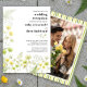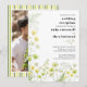 Invite your guests to celebrate in style with this sophisticated wedding reception invitation. Featuring a vibrant palette of citrus green and buttercup yellow, this design showcases a lush wildflower border that artistically fades along the left edge for a modern, airy feel. The front highlights your celebration with bold, contemporary serif typography. On the reverse, a punchy high-contrast striped border frames your favorite engagement photo, perfectly blending botanical elegance with a preppy, high-end aesthetic. Ideal for evening only celebrations or upscale garden parties.
