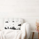 Modern cityscape design in black and white with a starry sky with clouds. The backside of the lumbar pillow has your personalised monogram letter in white over a black circular badge.