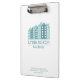 Organise your documents in style with this elegant clipboard featuring a modern cityscape logo in soft blue tones. Perfect for real estate professionals, brokers, and property consultants, this clipboard provides a sleek, professional look for client meetings, open houses, and business presentations. Crafted for durability and style, it’s an essential tool for maintaining a polished brand image in the real estate industry.