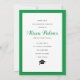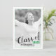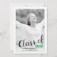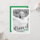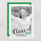 Modern Class of 2023 script green border photo invitation/announcement. It features a photo of the graduate and the text "Class of 2023 in black and green.