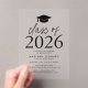 Celebrate the graduate's milestone with our Modern Class of 2025 graduation party invitations! These modern invites feature a transparent acrylic background, a stylish graduation cap design, and bold black lettering showcasing "Class of 2025." Perfect for high school or college graduations, each invitation is fully customisable with the graduate's name, school, and party details. Trendy and elegant, these invitations set the tone for a celebration to remember while making a lasting impression on your guests. Order your personalised Class of 2025 Graduation Invitations today to honour the grad in style!