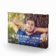 Celebrate your graduate with this modern graduation photo block. Simple design features a senior portrait of your grad with white striped overlay wording in varsity sports style lettering that can be personalised with the graduates name, school, and class year. Makes a beautiful keepsake to display in your home.